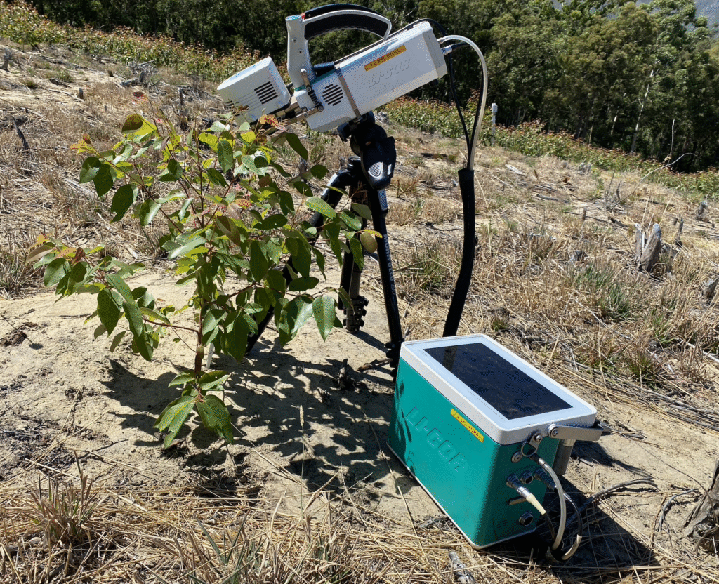 Dr. Edith Singini’s research, supervised by Prof. Dave Drew, examines how physiological trait plasticity underpins drought resilience in Eucalyptus across multiple environments and experimental scales. Her work integrates a systematic review and meta-analysis, a rainfall pulse study conducted under natural field conditions, controlled soil dry-down experiments, and a stand-density drought trial to address long-standing gaps in our understanding of tree drought responses.
